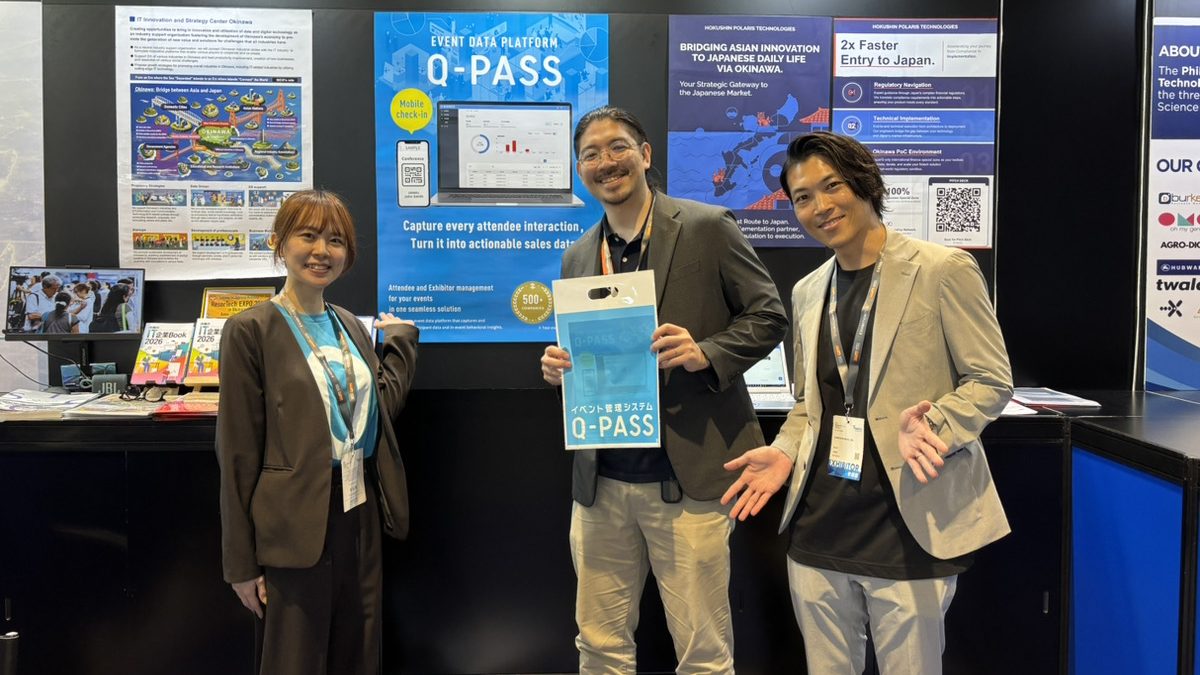 『InnoEX』は世界21か国から550以上のブースが集まる国際展示会です。人型のロボットやドローンといったハードウェアの展示や、インフラや医療などに対してAIを組み込んだソフトウェアの展示などがされており、その中でコプロシステムのサービスの一つであるイベント管理システムの「Q-PASS」を出展しました。